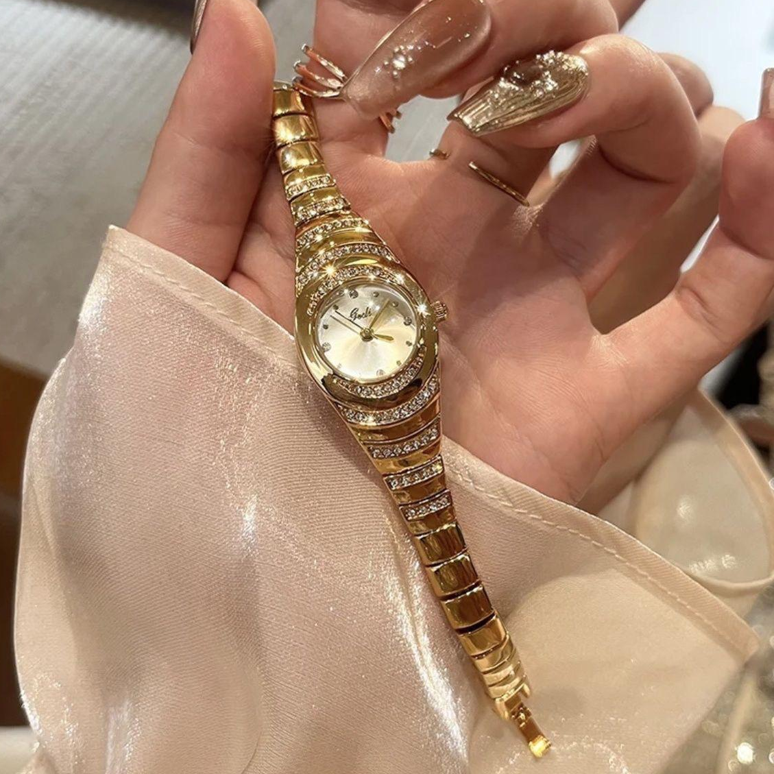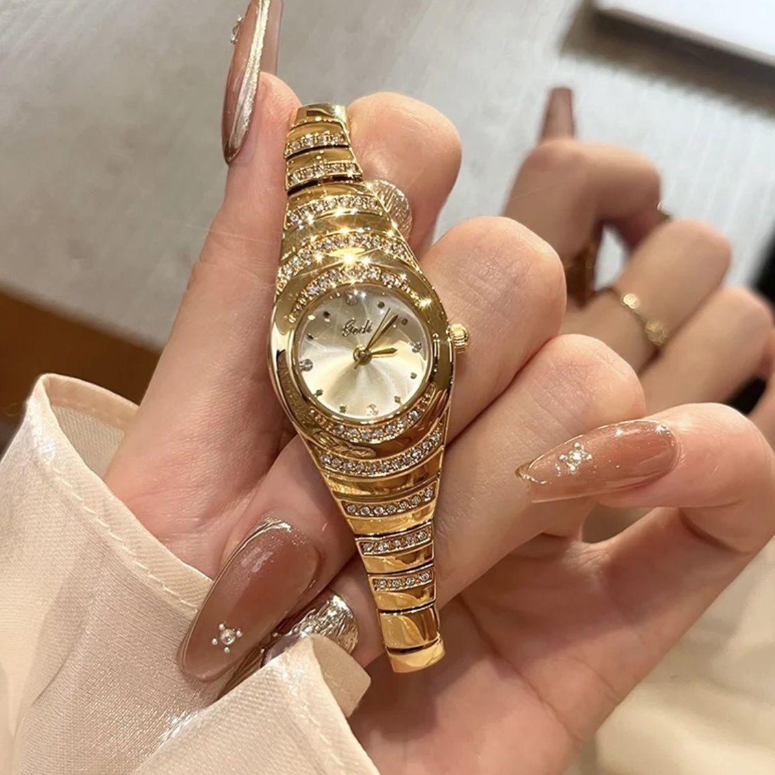 ساعة نسائية فاخرة باللون الذهبي